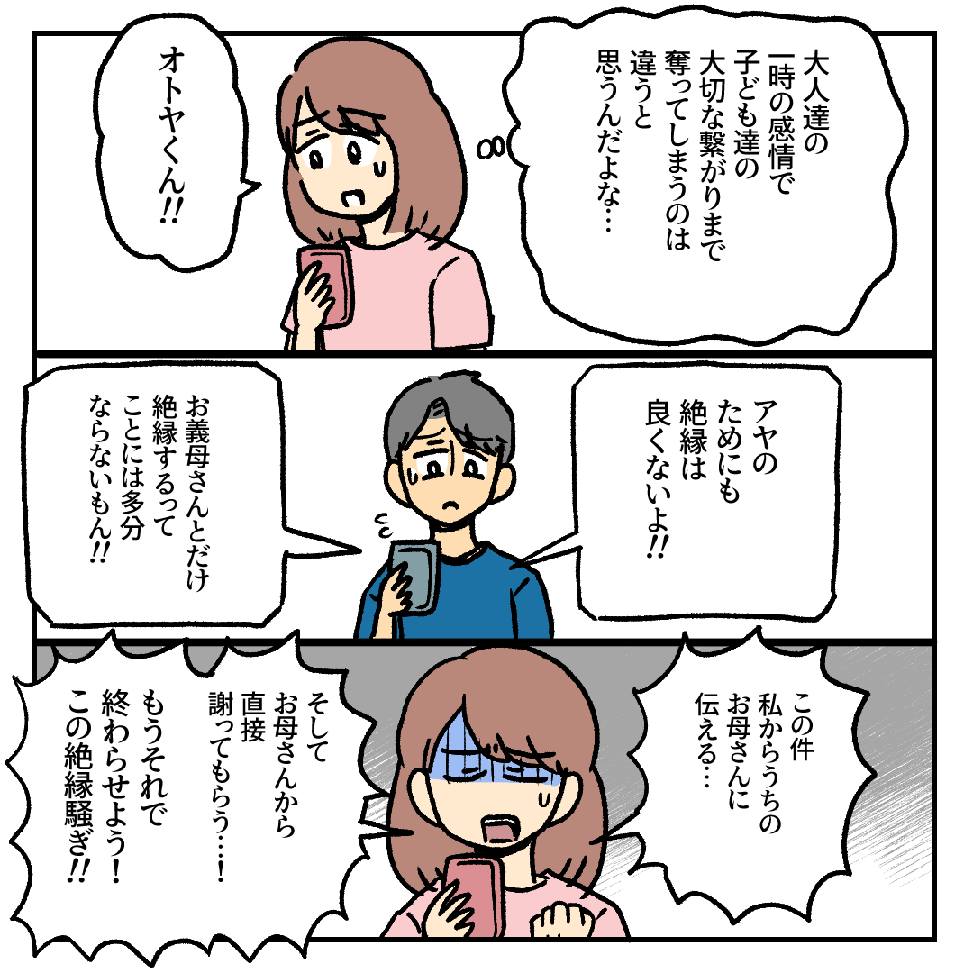 ハチャメチャ義母から3回絶縁宣言されちゃいました(9) 2023/02/14 こんにちは!かとです!ブログを見に来て下さり、ありがとうございます(∩´∀`)∩◆LINE登録をして頂くと、ブログの更新をLINEでお知らせ!!そのままLINEで最新話を読むことができて便利です(∩´∀`)∩ ぜひ登録してね😊 \SNSフォローもぜひお願いします(∩´∀`)∩/このお話は私の実体験をベースに描く【フィクション】です😊 前回のお話はこちら! 第1話はこちら! では第9話をどうぞ😊あぁ…🥺絶縁しとけばよかったのに…🥺(10)に続きます!! \単行本発売中(電子もあります)よろしくお願いします!/【amazon】 【ピッコマ(途中まで無料です)】 その他の人気連載もチェックしてみてね\不倫/不倫シタ側彼女はイチから描き直し、すくパラさんで連載することになりました! ブログ版も11月までは読めるので先が気になる方は読んでみてね😊連載版とは絵も内容も変わるのでどちらも楽しんでください💕\VS.義実家/\書籍化🎉幼児自慰体験談/\育児/\怖い話/\SNSフォローもぜひお願いします(∩´∀`)∩/◆LINE登録をして頂くと、ブログの更新をLINEでお知らせします(∩´∀`)∩LINEから簡単に読めますよ☆彡 「義母から3回絶縁宣言されちゃいました」カテゴリの最新記事 タグ :#義実家#嫁姑 < 前の記事次の記事 > コメント コメントフォーム 名前 コメント 記事の評価 リセット リセット 顔 星 情報を記憶 コメントを投稿する