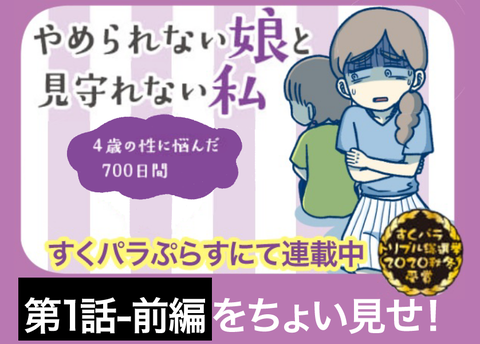 カテゴリ : やめられない娘と見守れない私 やめられない娘と見守れない私〜4才の性に悩んだ700日間〜(1-前編) こんにちは!かとです!ブログを見に来て下さり、ありがとうございます(∩´∀`)∩最後に読者登録ボタンがありますので、良ければそちらから登録をおねがいします!(∩´∀`)∩ブログが更新されるとLINEでお知らせ!!そのままLINEで最新話を読むことができて便利です(∩´ ... 続きを読む