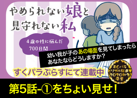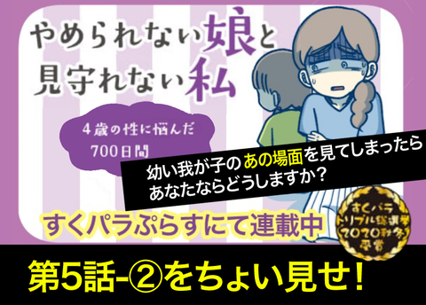 カテゴリ : やめられない娘と見守れない私 やめられない娘と見守れない私〜4才の性に悩んだ700日間〜(5-②) こんにちは!かとです!ブログを見に来て下さり、ありがとうございます(∩´∀`)∩最後に読者登録ボタンがありますので、良ければそちらから登録をおねがいします!(∩´∀`)∩ブログが更新されるとLINEでお知らせ!!そのままLINEで最新話を読むことができて便利です(∩´ ... 続きを読む