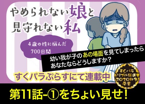 カテゴリ : やめられない娘と見守れない私 やめられない娘と見守れない私〜4歳の性に悩んだ700日間〜(10-③)) こんにちは!かとです!ブログを見に来て下さり、ありがとうございます(∩´∀`)∩最後に読者登録ボタンがありますので、良ければそちらから登録をおねがいします!(∩´∀`)∩ブログが更新されるとLINEでお知らせ!!そのままLINEで最新話を読むことができて便利です(∩´ ... 続きを読む