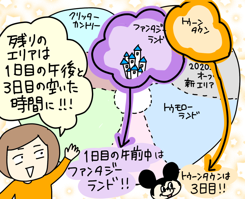逆算して、スタートはファンタジーランドにしました(∩´∀`)∩