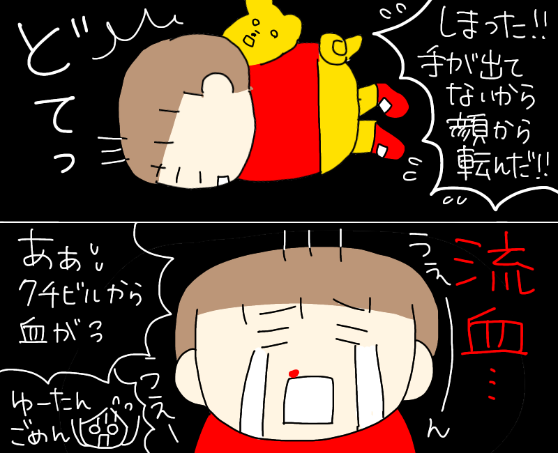 両手が出ておらず顔から転んでしまいました・・・(;´Д`)