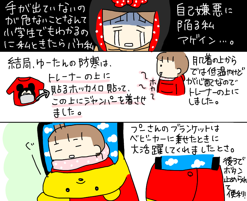 もどしたものはプーさんブランケットがキャッチしてくれました・・・。